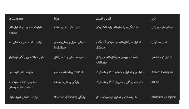 استفاده همزمان از این ابزارها در هر مرحله از فرآیند مهندسی معکوس باعث افزایش دقت، سرعت و کیفیت تحلیل مدارها می‌شود.