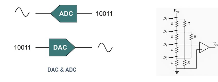 DAC دستگاهی است که سیگنال دیجیتال (دنباله‌ای از اعداد دودویی) را به سیگنال آنالوگ (مانند ولتاژ یا جریان پیوسته) تبدیل می‌کند. در مقابل، ADC سیگنال آنالوگ را دریافت کرده و آن را به شکل دیجیتال برای پردازش، ذخیره‌سازی یا ارسال به سیستم‌های کامپیوتری تبدیل می‌کند (Razavi, 2000). در واقع، ADC پل ارتباطی از دنیای آنالوگ به دیجیتال است و DAC مسیر برگشت را فراهم می‌کند.