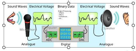 DAC در مسیر خروجی یک سیستم دیجیتال قرار دارد. به عنوان مثال، پس از پردازش صدا در یک میکروکنترلر، خروجی دیجیتال باید به سیگنال آنالوگ برای پخش از بلندگو تبدیل شود. در مقابل، ADC در ورودی سیستم دیجیتال استفاده می‌شود؛ مانند زمانی که سیگنال صدا از طریق میکروفون گرفته شده و برای پردازش دیجیتال به عدد تبدیل می‌شود (Baker, 2019).