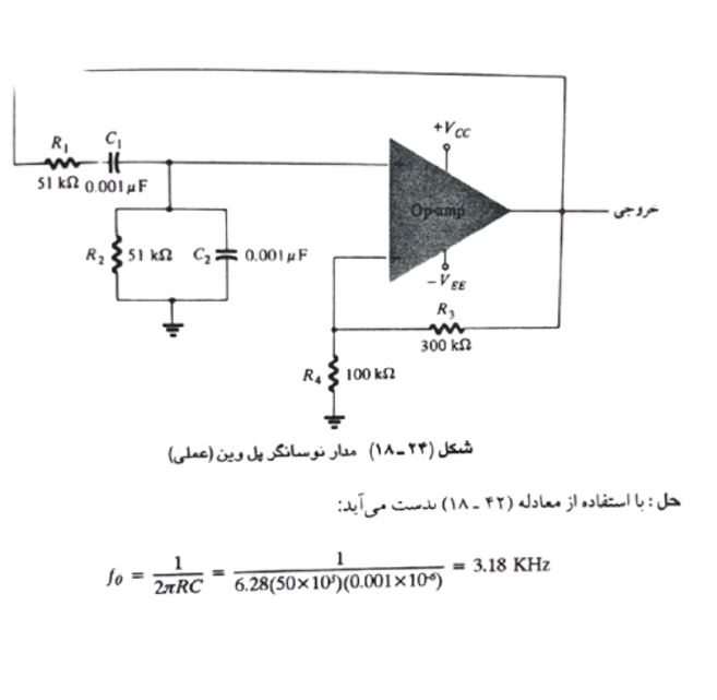 یک مثال از فرکانس تشدید نوسان گر پل وین را در مشاهده می کنیم: